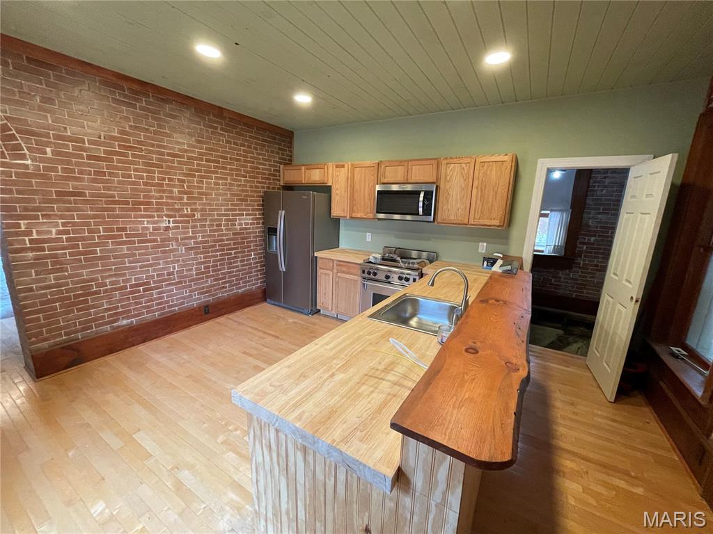 This home is a work in progress. Newer roof, updated cooling upstairs, newer bathrooms Victorian brick home, a perfect blend of classic charm and modern convenience. The 4 bedrooms each offer a cozy retreat with ample natural light and original woodwork that adds a touch of historic charm. The living spaces offer high ceilings and intricate woodwork throughout the home, providing a sense of grandeur and warmth. The large kitchen with new cabinets offers lots of potential. The enclosed porch is perfect spot for morning coffee or evening relaxation, offering a peaceful view of the river. The walkout limestone basement could be finished to offer additional living space. An additional outbuilding is perfect for creative endeavors, equipped to be transformed into a personal art studio, workshop, or home office with 1 car garage below. This home is a rare find, combining historic beauty with functional updates, making it an ideal choice for those who appreciate character and quality.