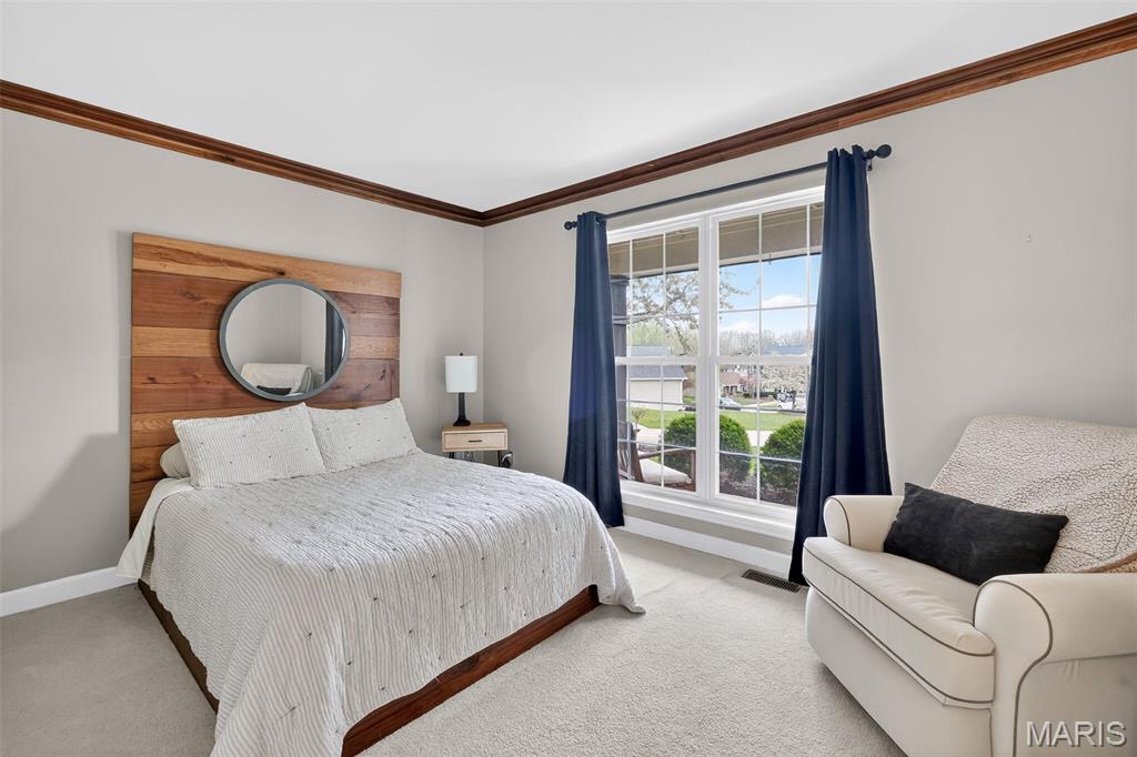 Showings begin 4/9, with an open house on 4/11 from 11 to 1. Welcome to easy main floor living in this stunning ranch with incredible curb appeal, featuring charming dormers, new siding, a new roof, and a new garage door, all tucked away on a quiet cul de sac with a park like backyard in a peaceful pocket of O’Fallon. Step inside to an expansive living area with a formal dining space (currently used as a den) and a great room with vaulted ceilings, a bay window, built in shelving, and a cozy fireplace, all flowing seamlessly into an open concept kitchen with soaring vaulted ceilings. Luxury bamboo flooring adds a sense of peace and zen throughout the home, while maple colored cabinets in the kitchen and bathrooms further enhance the warm, calming feel. The desirable split bedroom floor plan includes a spacious primary suite with vaulted ceilings, a bay window, a beautifully remodeled ensuite bath with a luxury glass shower, and a massive walk in closet, while two additional bedrooms are generously sized and share a well appointed hall bathroom. Enjoy the convenience of main floor laundry and an oversized two car garage, plus a mostly unfinished basement offering a fantastic opportunity to create additional living space. And just wait until you see the park like backyard, sitting on over 1/3 of an acre and complete with an irrigation system. Located within the highly desirable Fort Zumwalt North School District, within walking distance to Alligator’s Creek Aquatic Center, and offering quick access to I-70 in under five minutes, this home is an unbeatable value in one of O’Fallon’s most desirable areas.
